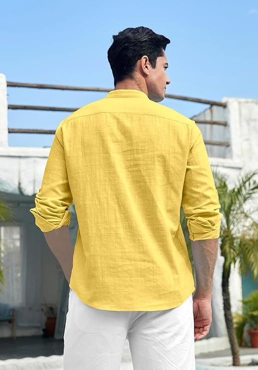 Cotton Blend Solid Casual Short Kurta for Men Long Sleeve