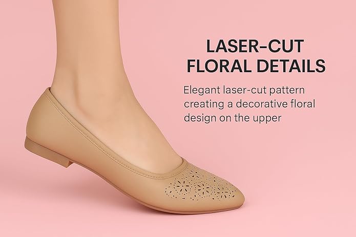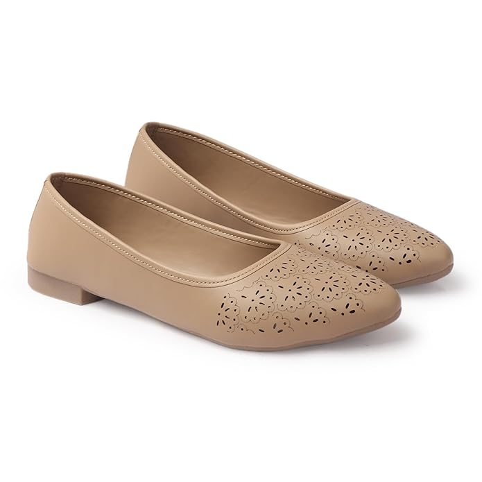 • VERSATILE STYLE: Classic beige ballet flats with a low heel suitable for casual wear, office use, and light walking activities