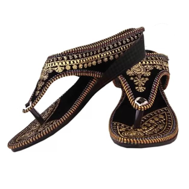 • Elegant Velvet Finish with Embroidery Premium ethnic slippers with intricate embroidery on soft velvet fabric offering a stylish yet traditional look for daily and festive wear.